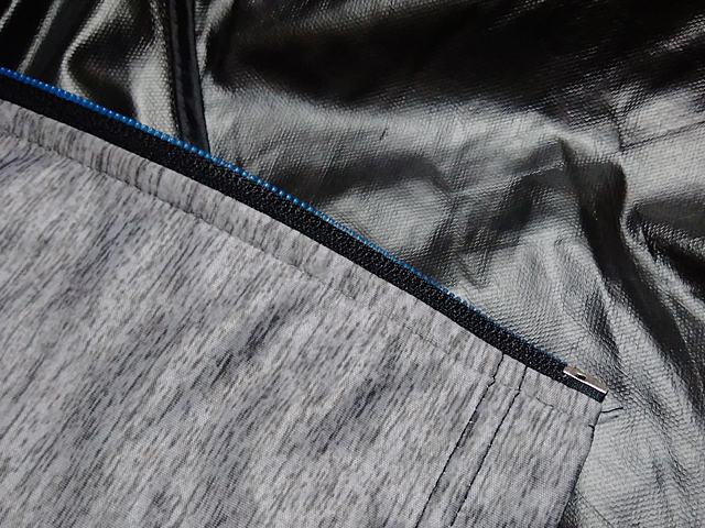 でもただの防風ジャケットでは無いのが、防風素材は前身頃と袖の外側2/3くらいだけ使ってるって事。