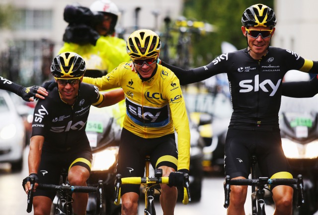 Moto3でもお馴染みのSKYのフルーム、ヤマハファクトリーでお馴染みのモビスターのキンタナ、チームが最後と成るティンコフのコンタドール。