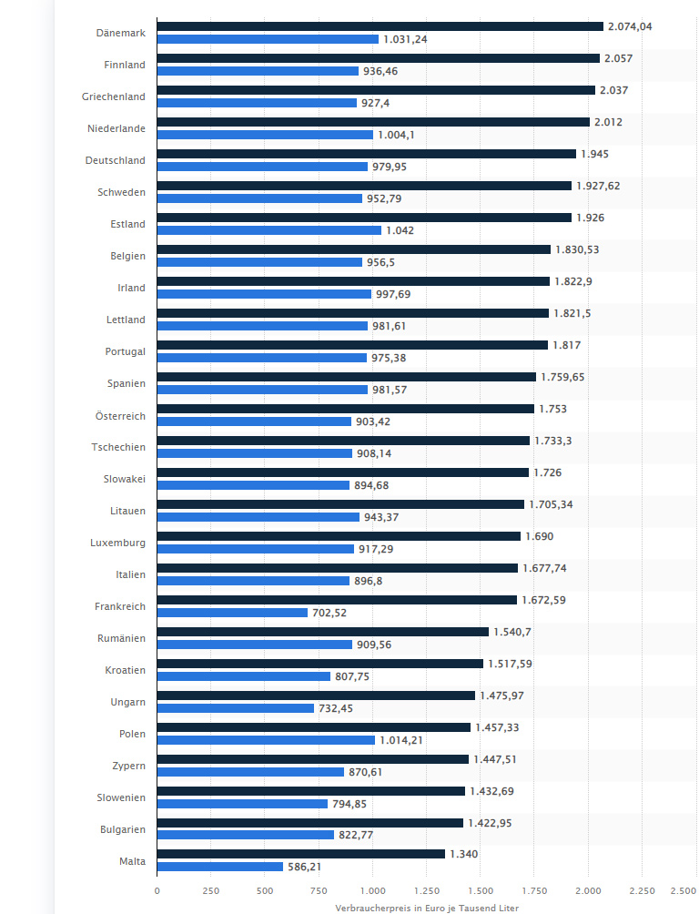 1リットル当たり、税込み価格は2.074ユーロ。