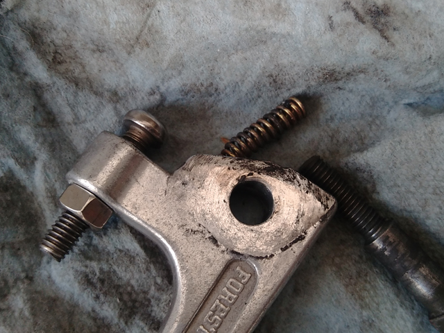 クラッチレバー程では無いけれど、このブレーキレバーもピポッド部分に磨耗が起こってる。