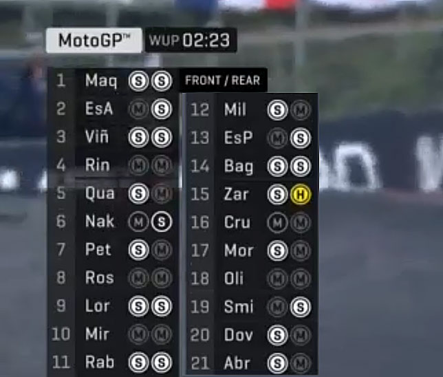 一人ソフト履いてたテック3ヤマハから一転、KTM移籍以降は堅めのタイヤの傾向なザルコだけど、やっぱりそうぜざるを得ないんだろうね。