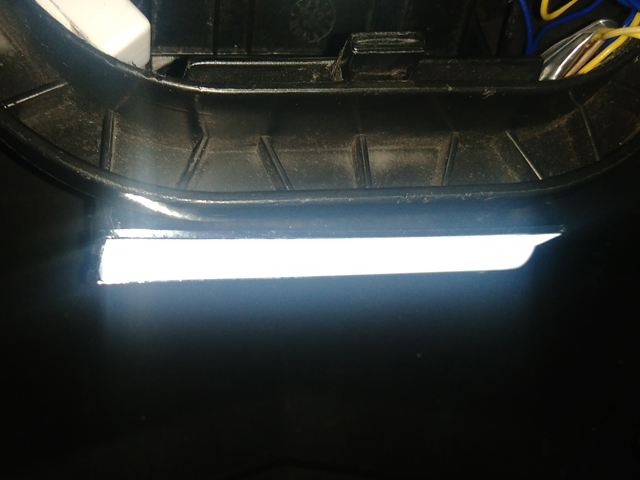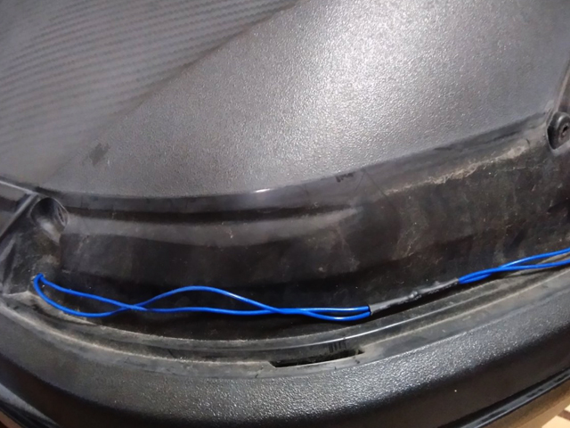 このケースには外部にリフレクターが付いてたので、穴空けてリフレクターの裏側にケーブルを通す事に。
