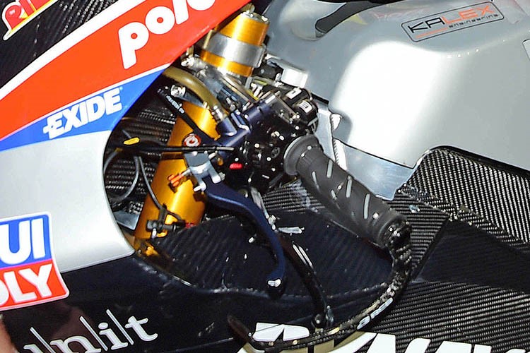 でも一時期マルケスがやったように、MotoGPの世界で所謂スクータースタイルが一般化したら、左レバーでリアブレーキを操作する描写にも一定のリアリティが生まれるのかも知れない。