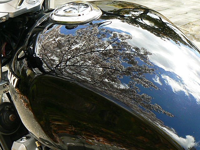 こんな具合に、意外とテラテラヌメヌメに塗るのは難しく無いのだけど、あくまでそれはバイクのタンクやカウル程度の大きさなら、って話。