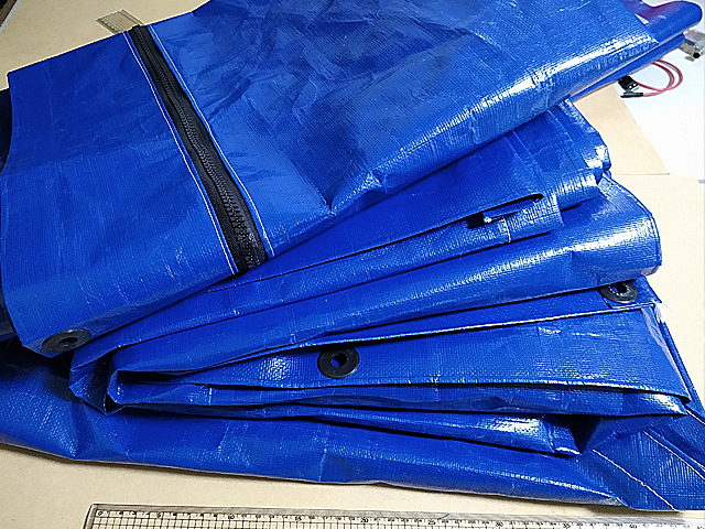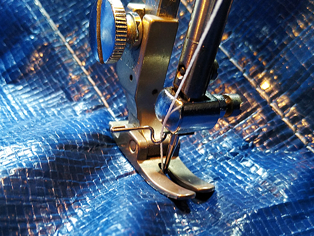 なお、ブルーシートを縫うのは大してミシンのパワーは要らないけれど、送りの歯が下にしか着いてない一般的な下送りでは、生地の送りがちょっとしんどい。