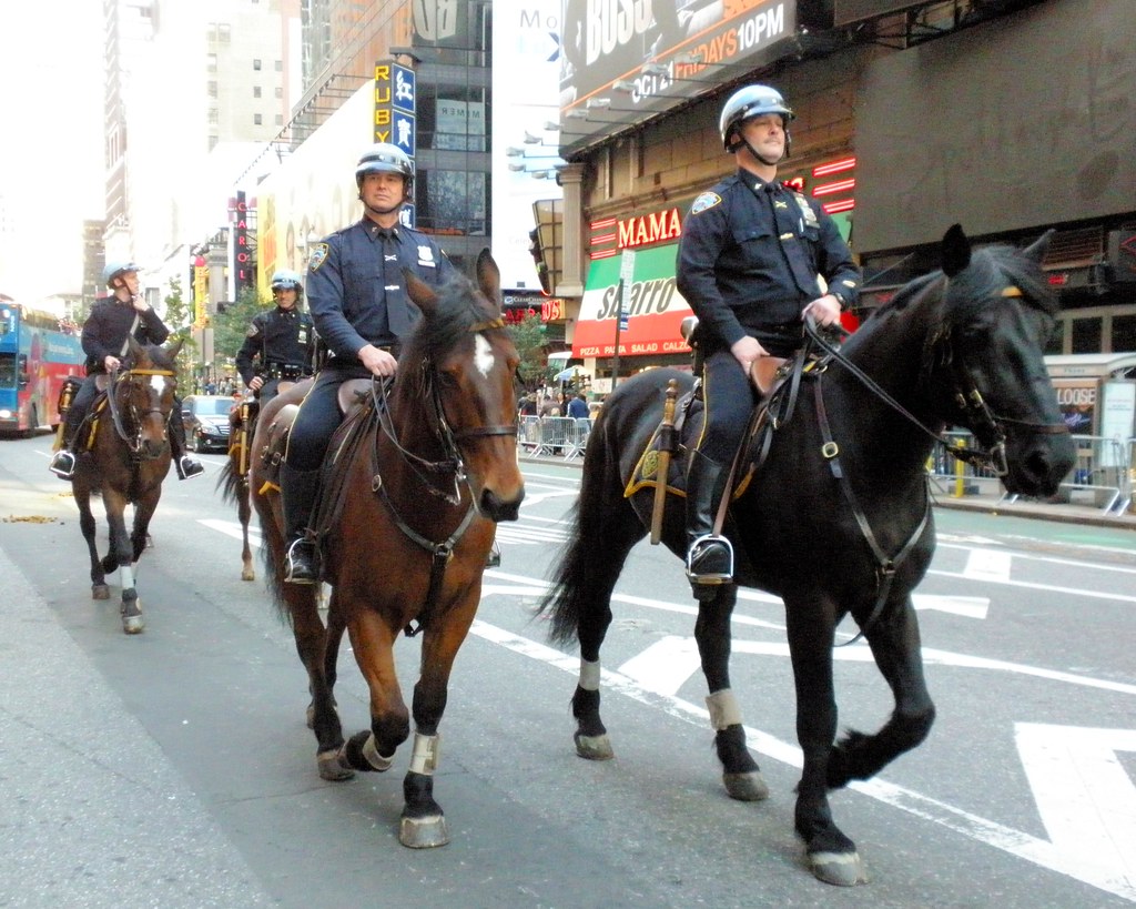 このタイムズスクエアのライブカメラには、昼間はそこそこ高い確率で騎馬警官の姿が映る。