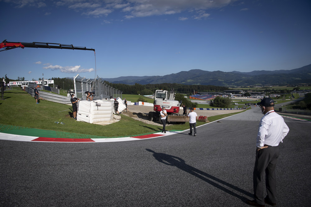 先週大きな事故の有ったターン3イン側に防護壁を追加してもうバイクが飛んでこないようにする処置。