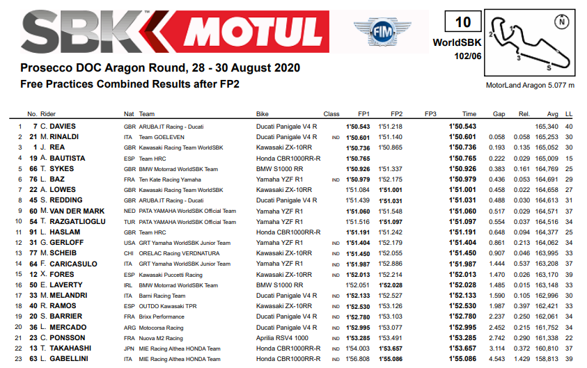 FP2では、再開以来いまいち安定しないアレックス・ロウズが制するかと思ったものの、FP2後半に転倒を喫して最後にジョナサン・レイにパスされる。