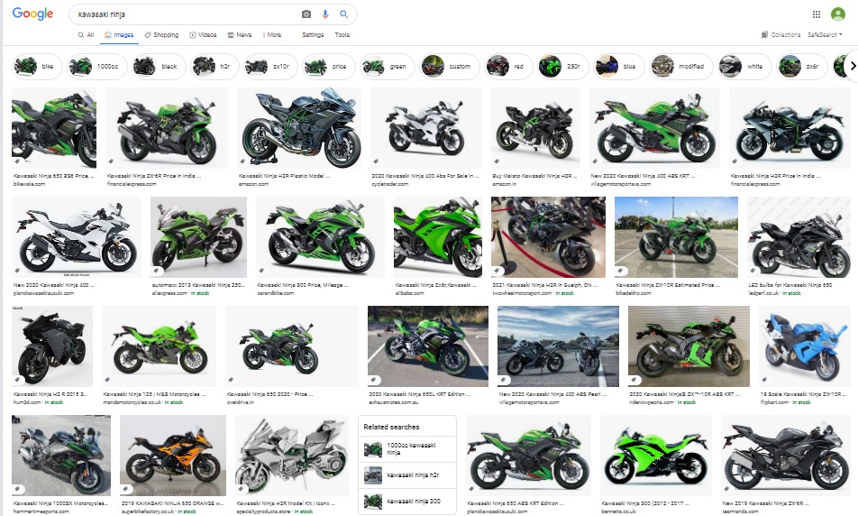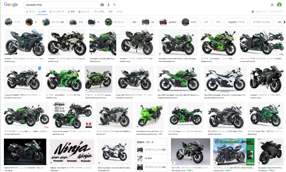 2020年9月現在、KAWASAKI+NINJAでGoogle画像検索した結果はこちら。