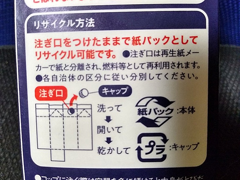 私の住む地域はこのままゴミに出せるけれど、キャップだけハサミで切れ!なんて言われたら、ちょっと違う牛乳を選んでしまうと思うな。