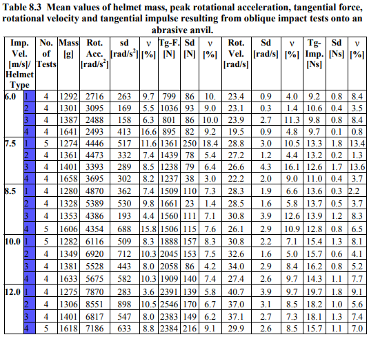 上記のCOST 327のテストとは条件は異なるが、単純に速度は低いのでSHARPのテストではABSシェルのヘルメットがより良好な結果が出ると言えるのかも知れない。