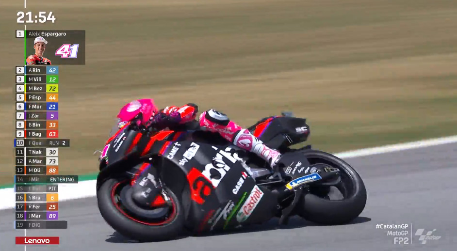 一方、ポイントリーダーのクアルタラロは13番手、バニャイアは14番手、そして毎回転んでるような気がするマルティンは転倒の影響からか20番手と大きく遅れるスタート。