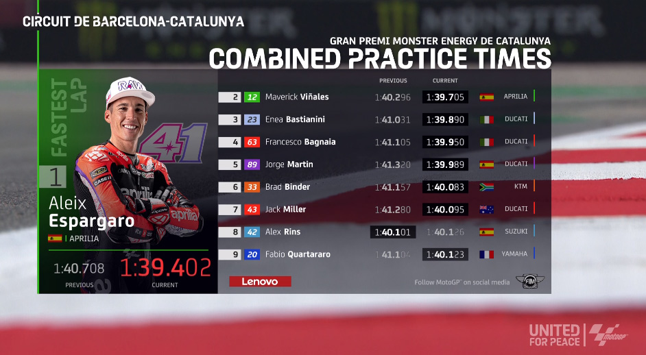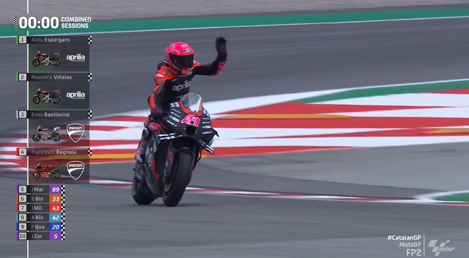 そして巻き返したビニャーレスが続き、アプリリアの1&2で初日を終える。