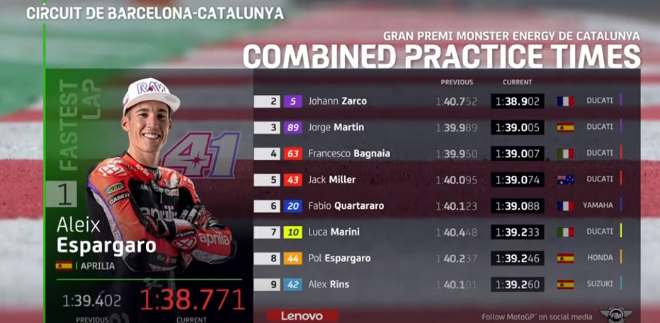 昨日のFP2では、エスパルお兄ちゃんとビニャーレスのアプリリアコンビが1&2。
