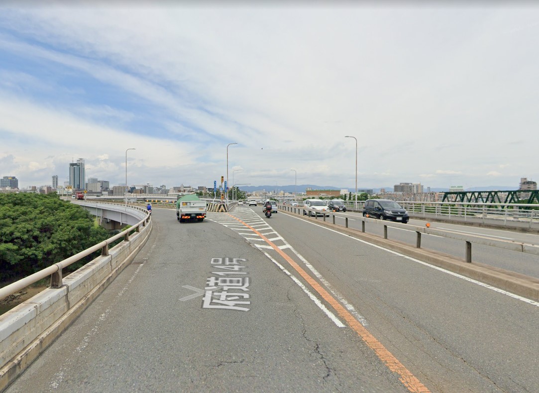 左に別れた道は、グイっとカーブして東淀川方面、つまり長柄橋を渡って右へと進む道に繋がる。
