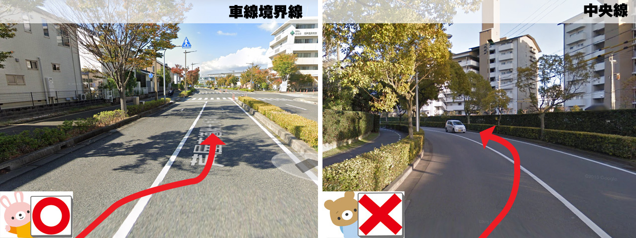 上にも載せた画像だが、左が車線境界線で右が中央線。