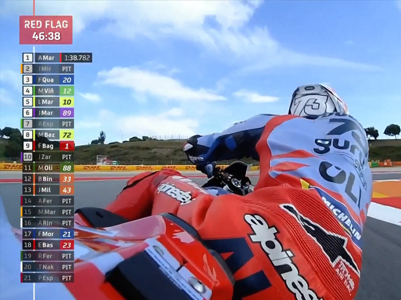レッドフラッグ前に転倒したポルとミルにはリスタート時間が稼げるのでラッキーかもね。